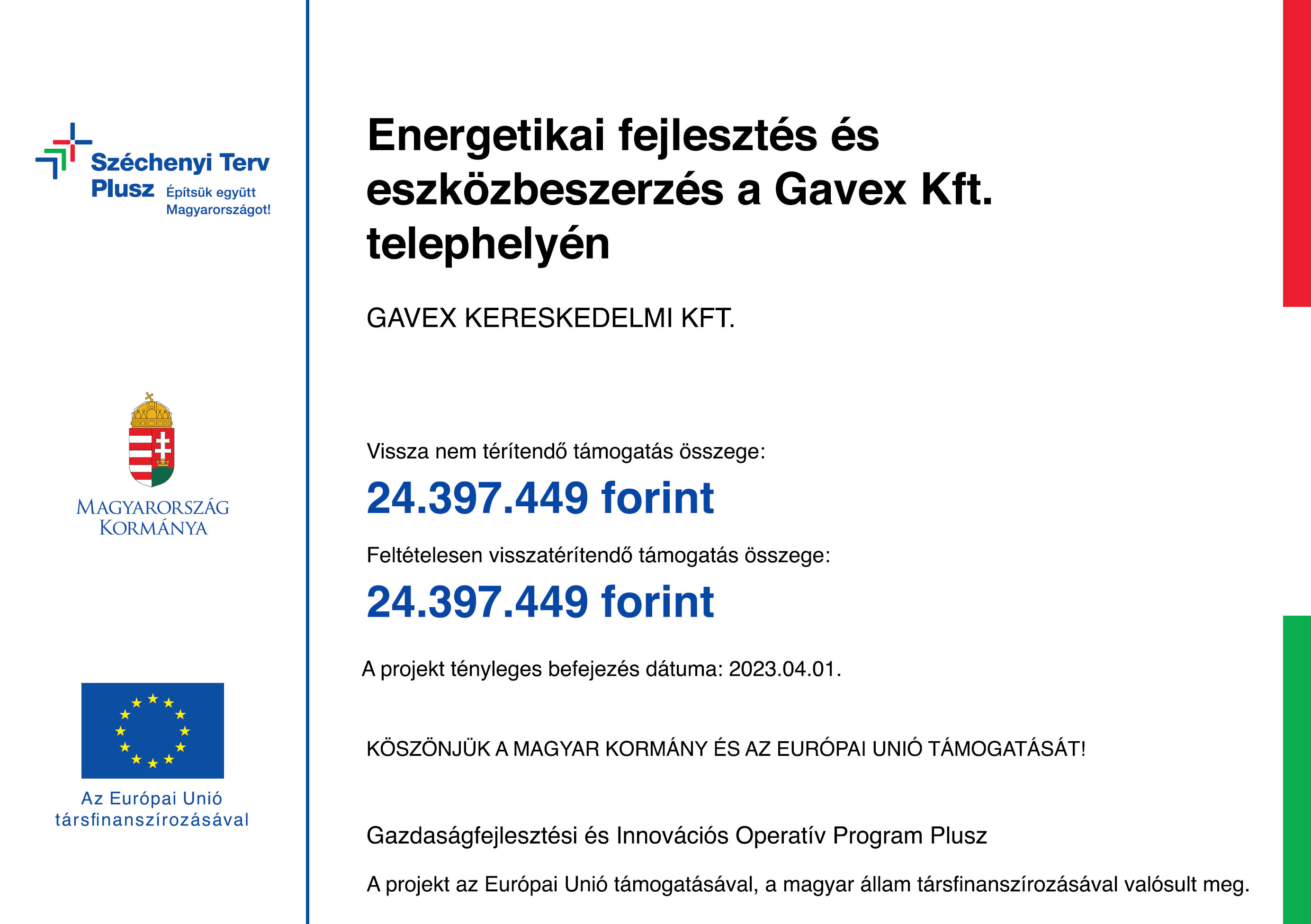 A projekt címe: Energetikai fejlesztés és eszköz beszerzés a Gavex Kft. telephelyén.