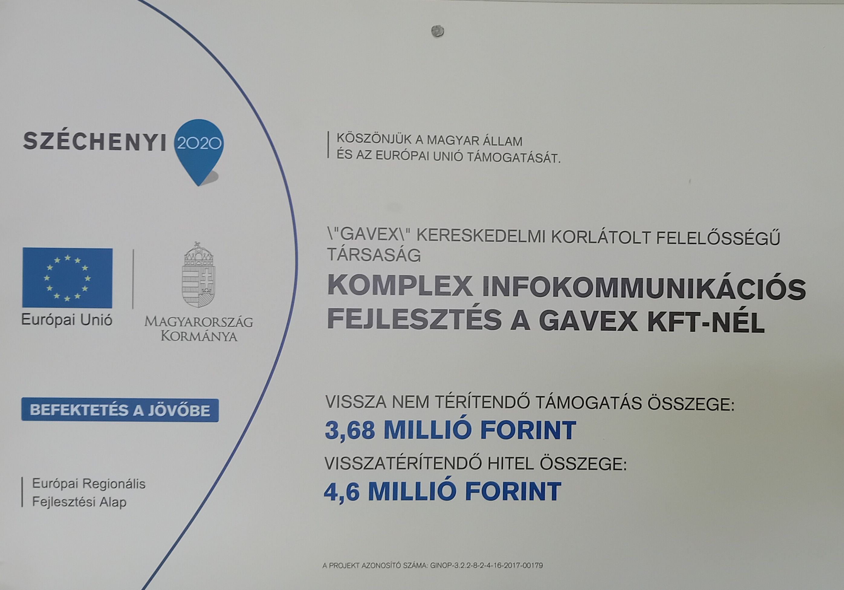 A kedvezményezett neve: "GAVEX" Kereskedelmi Korlátolt Felelősségű Társaság